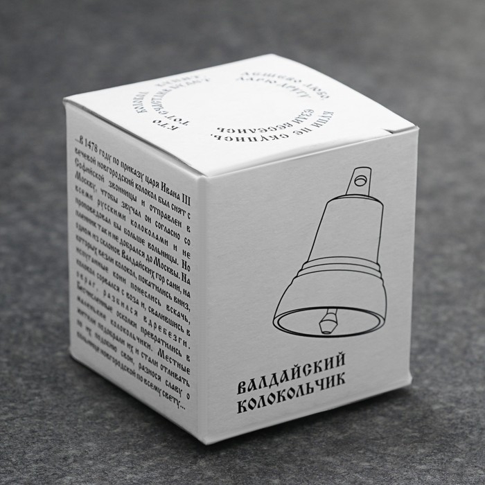 Если верить легендам, то история валдайских колокольчиков начинается со времен царя Ивана III, который распорядился перевезти новгородский колокол в Москву, навсегда забрав его с Софийской звонницы. Всё шло благополучно до тех пор, пока перевозчики не достигли Валдайских гор. Именно здесь сани, на которых был закреплён вечевой колокол, покатились по скользкой дороге, опрокинулись, и колокол, упав на дно пропасти, разлетелся на сотни маленьких кусочков. Как утверждают историки, именно из этих осколков возникли валдайские колокольчики. После на это место стали приходить местные жители. Они собирали колокольцы и, принеся их домой, просили мастеров литейного дела делать их копии. Это было связано с верой в их чудодейственную силу. Люди свято верили, что в доме, где есть свой валдайский колокольчик, непременно поселятся счастье, мир, лад, покой и благополучие.