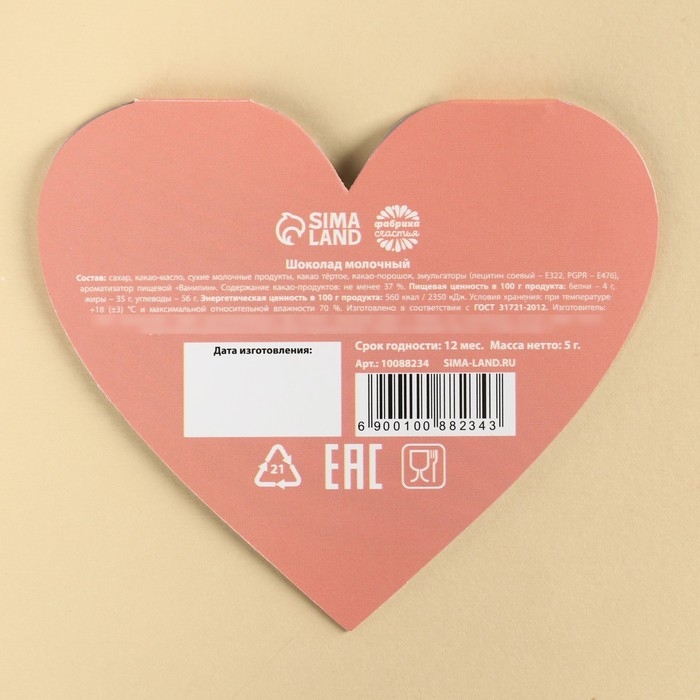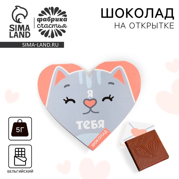 Валентинка с шоколадом 5 г "Я люблю тебя" кот