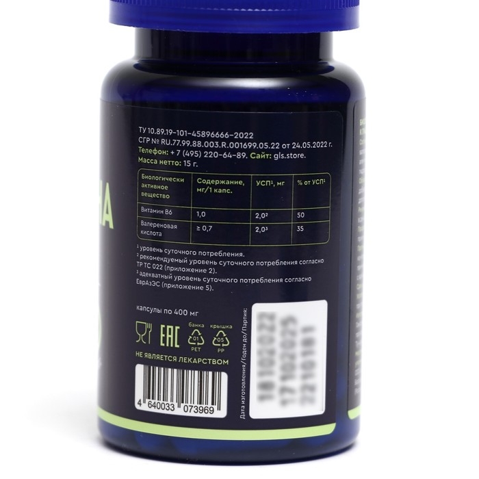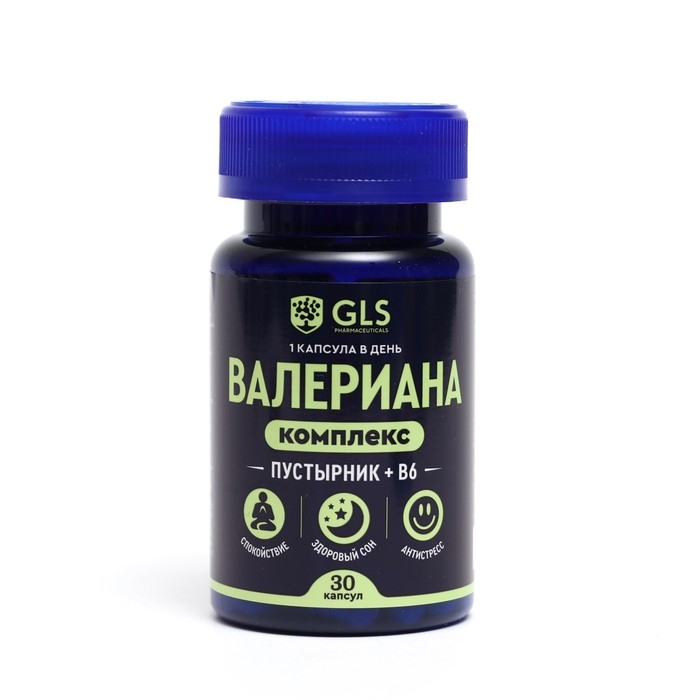 Валериана комплекс GLS с пустырником и В6, 30 капсул по 400 мг