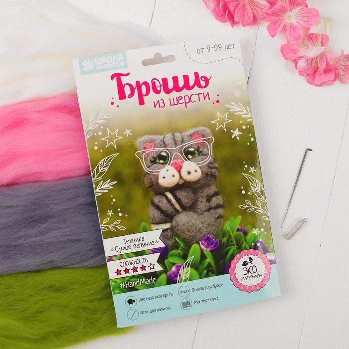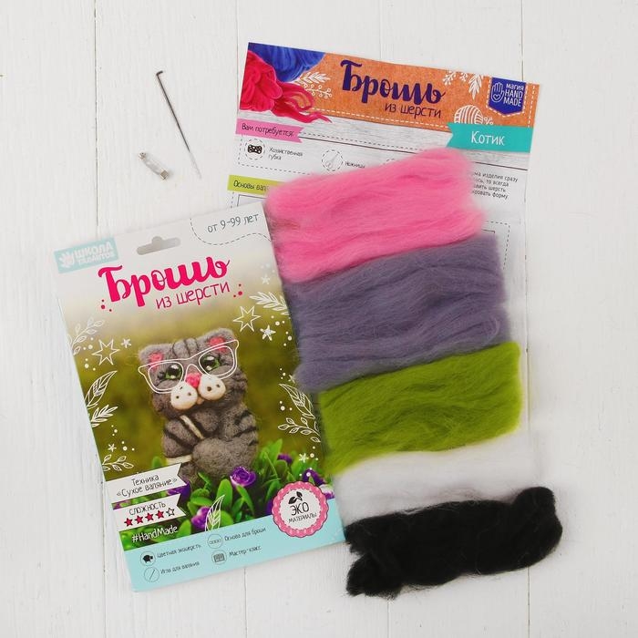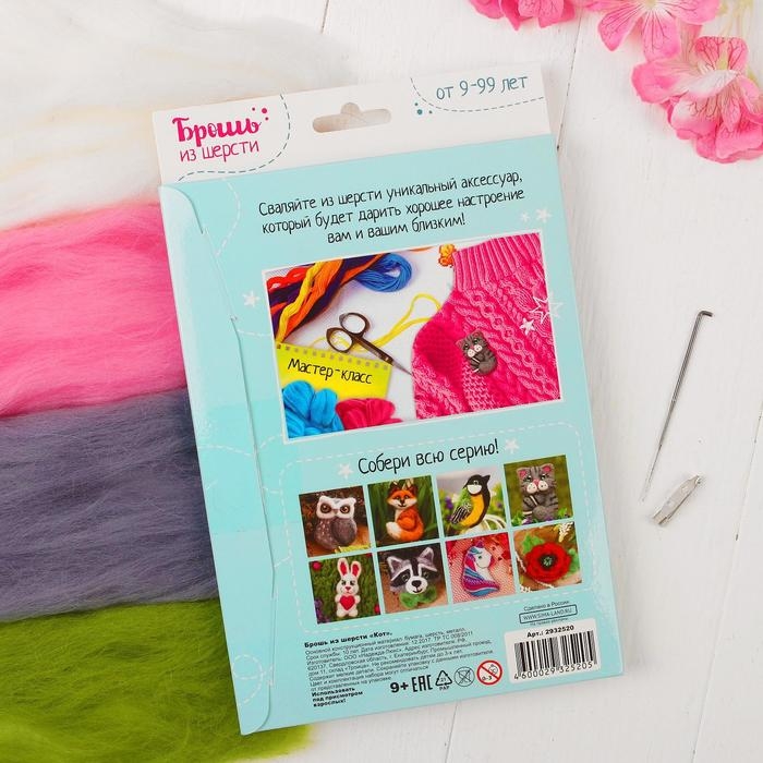 Валяние из шерсти. Брошь «Кот», набор для творчества