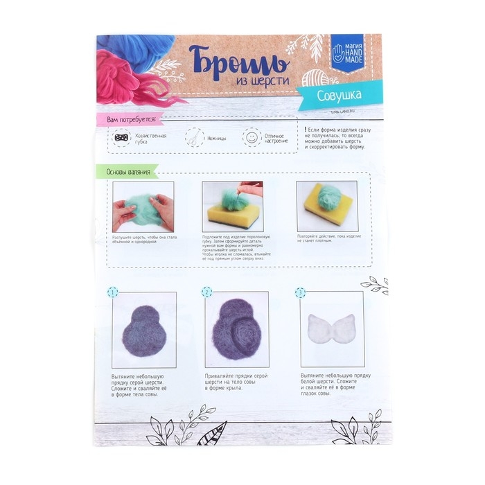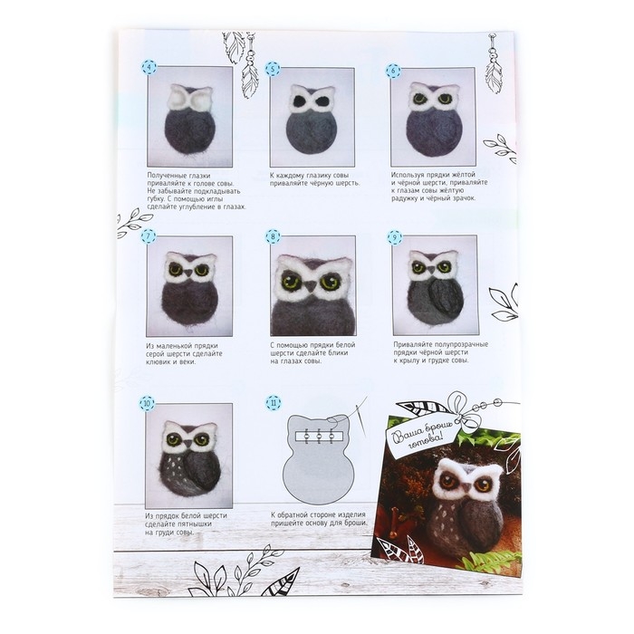 Валяние из шерсти. Брошь «Сова», набор для творчества