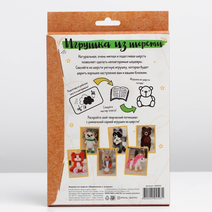 Валяние из шерсти. Игрушка «Медвежонок с ягодами», набор для творчества