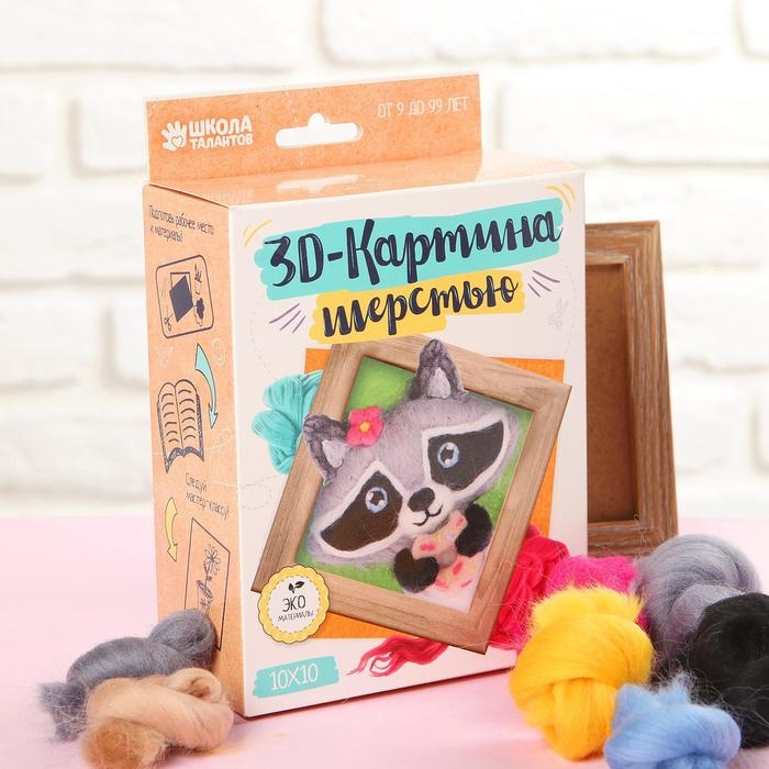 Валяние из шерсти. Объёмная картина «Енот», 10 х 10 см