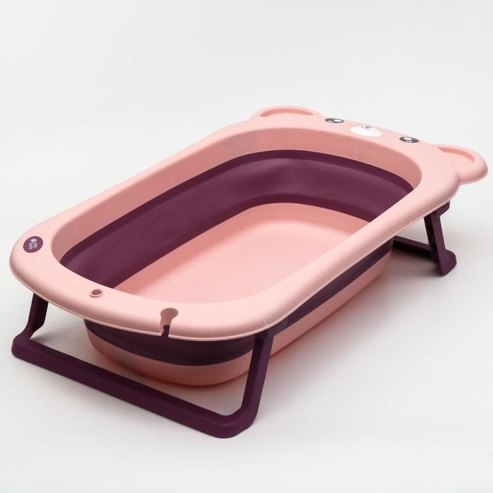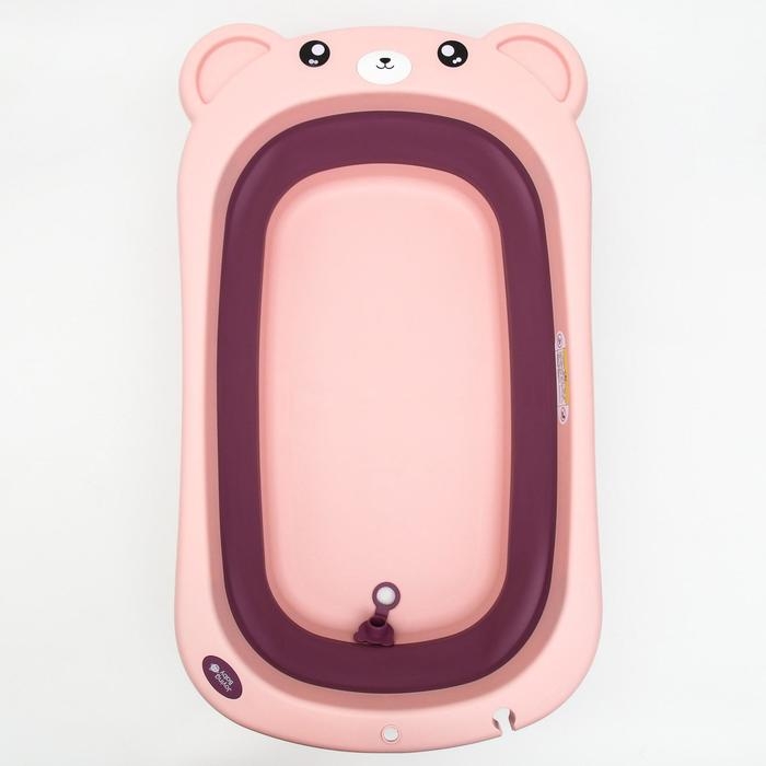 Ванночка детская складная со сливом, «Мишка», 83 см., цвет розовый