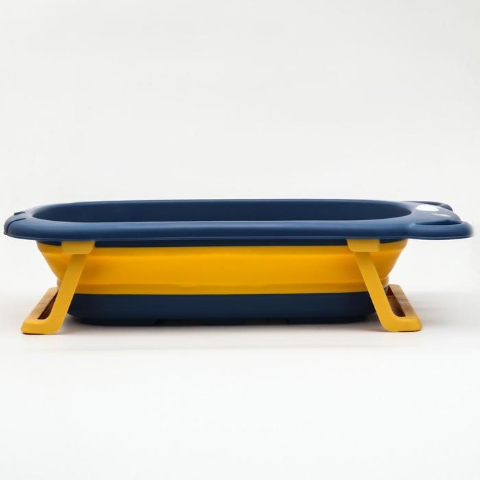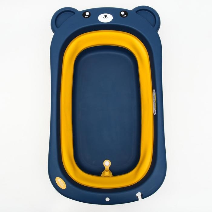 Ванночка детская складная со сливом, «Мишка», 83 см., цвет синий