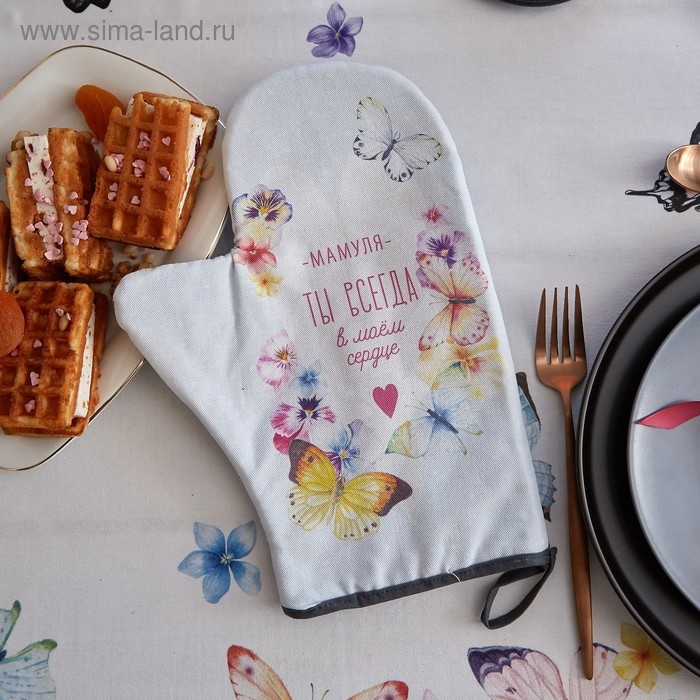 Варежка-прихватка Этель "Мамуля" 20х28 см, 100% хлопок, саржа, ватин 250 г/м2