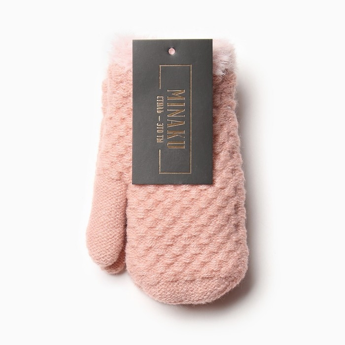 Варежки детские на иск.меху MINAKU с опушкой 15 см розовый