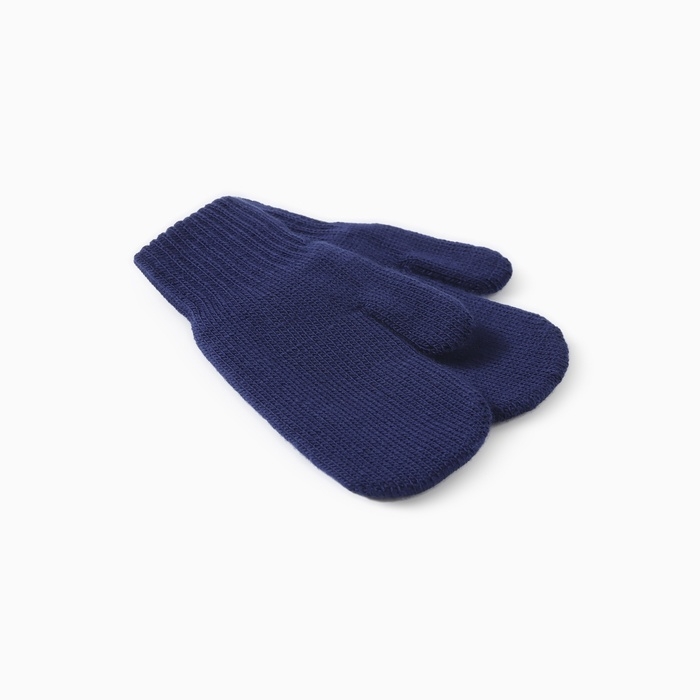 Варежки двойные детские, цвет тёмно-синий, размер 12