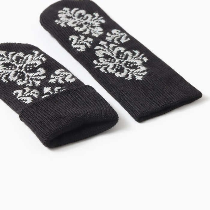 Варежки двойные ручная вышивка, цвет черный, р-р 18
