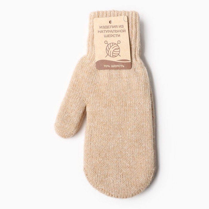 Варежки двухслойные шерстяные, цвет бежевый, размер M