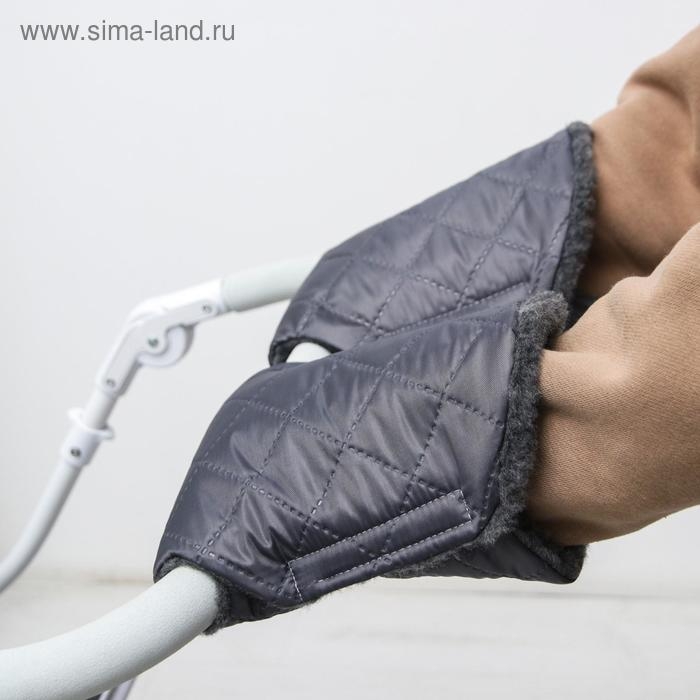 Варежки-муфты на ручку коляски, 2 шт., стеганные, цвет серый
