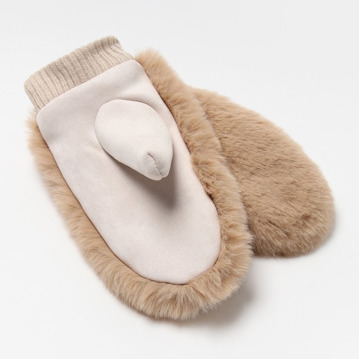 Варежки на иск.меху MINAKU объемные 23 см бежевый