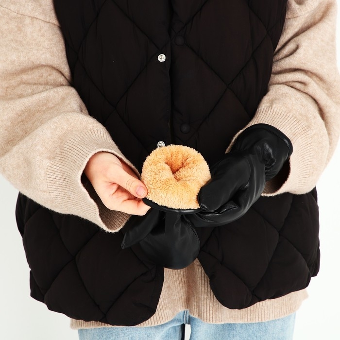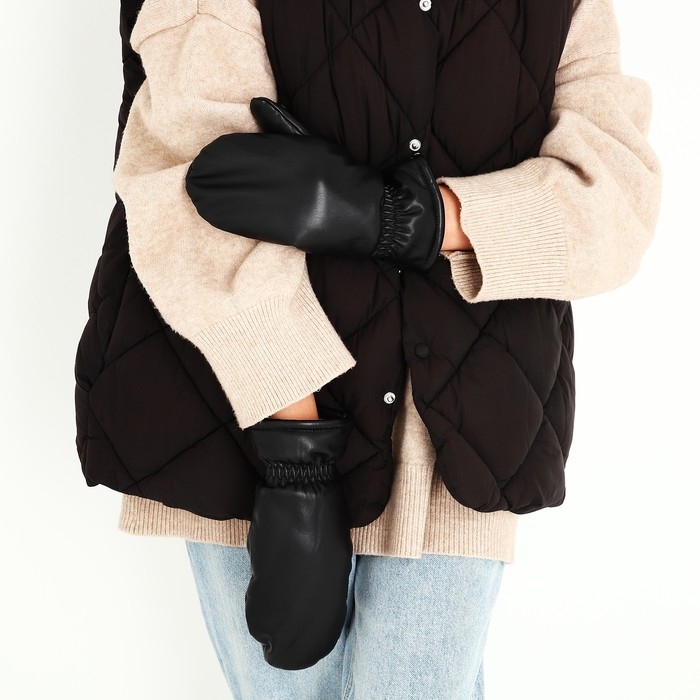 Варежки женские, безразмерные, с утеплителем, цвет чёрный