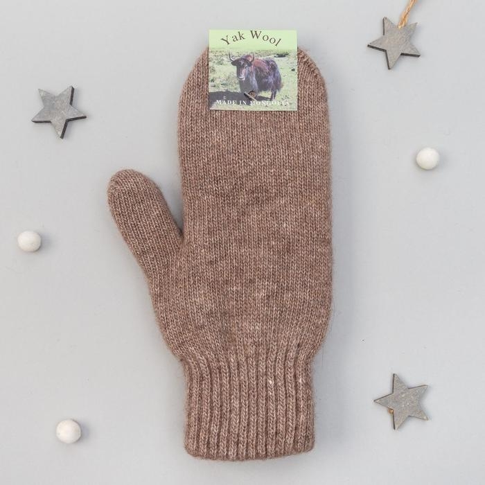 Варежки женские из монгольской шерсти, цвет коричневый, размер 17-19 (6,5-7,5)