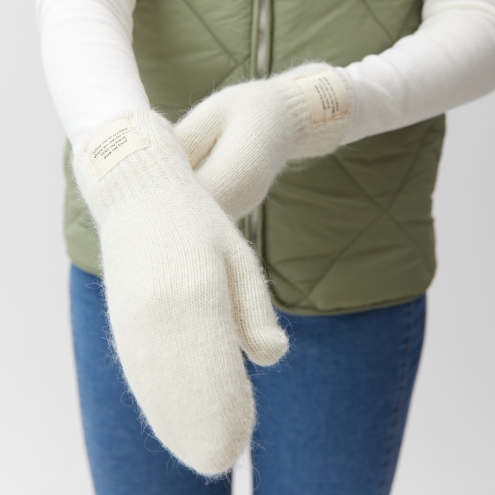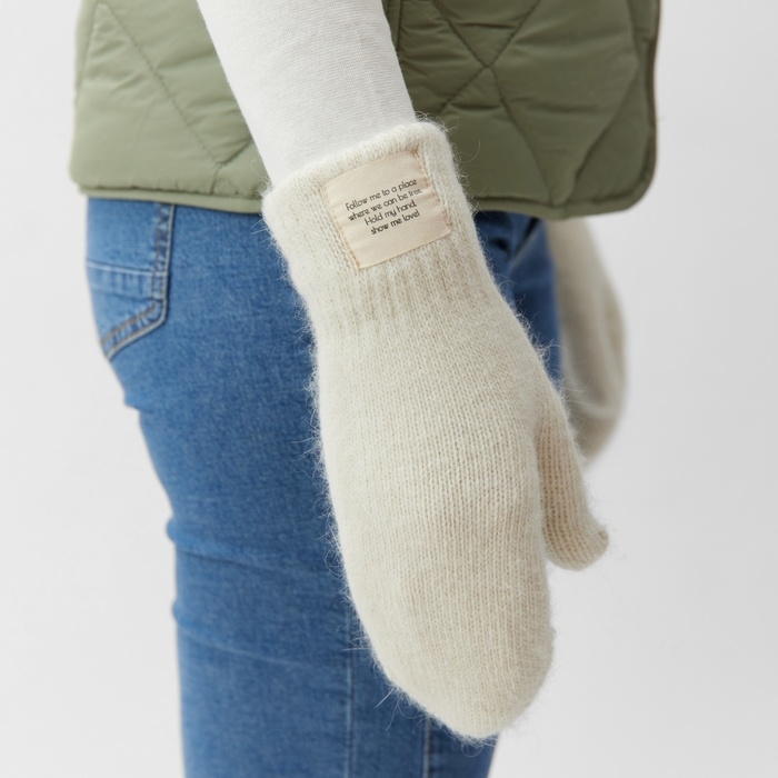Варежки женские MIST с шерстью кролика, р-р 22 см, цв. молочный