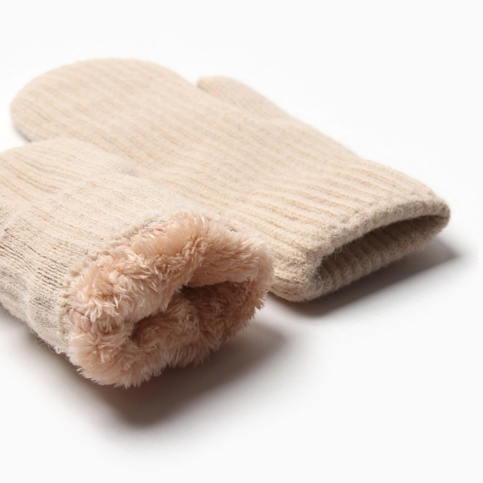 Варежки женские на иск.меху MINAKU рубчик 22 см бежевый