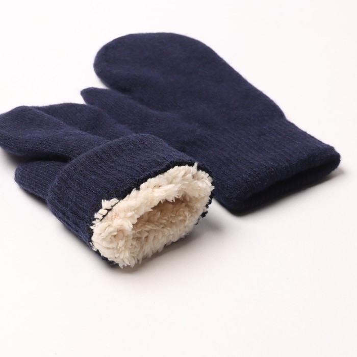 Варежки женские с мехом внутри ВЖ632-01, цвет темно-синий, р-р 7-8