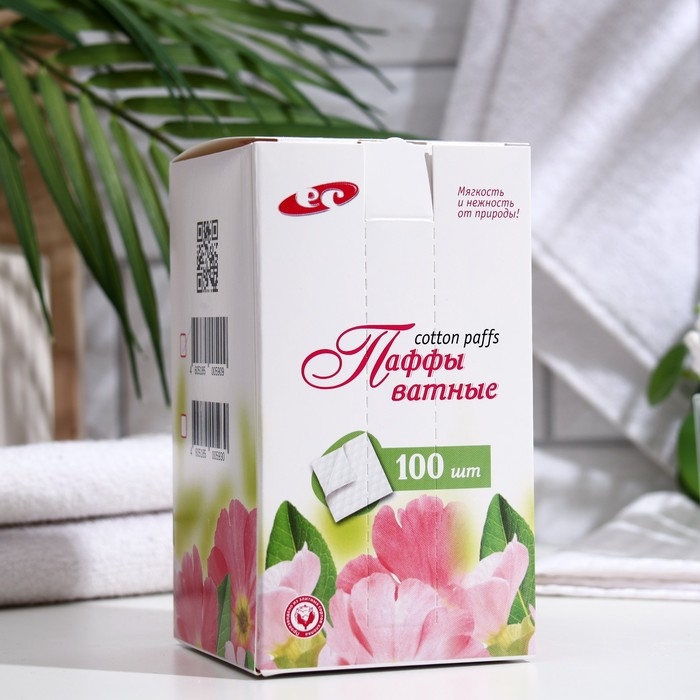 Ватные паффы косметические, сложение стопкой, 7,5*7,5см, 100 шт