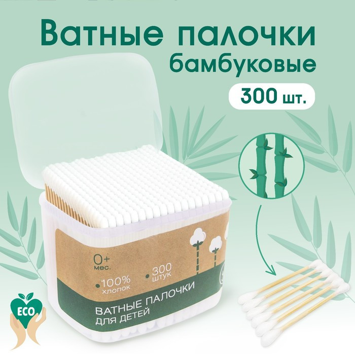 Ватные палочки, коробка 300 шт., деревянные