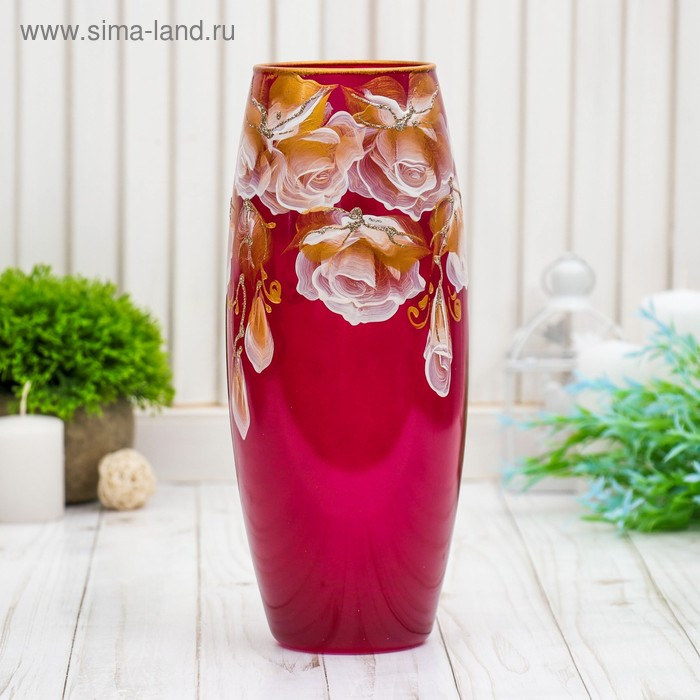 Ваза "Белые цветы на красном" d-7.5см 11х25см