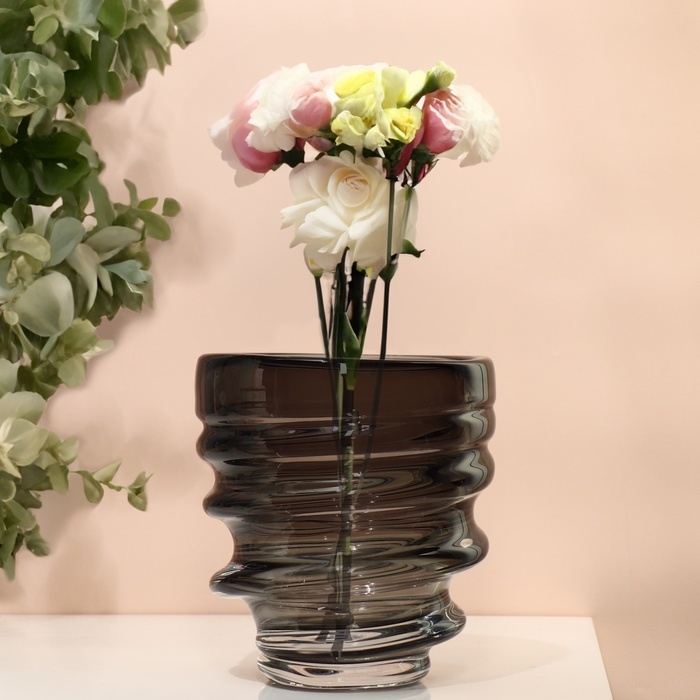 Ваза для цветов «Пилея» из прозрачного черного стекла 20 х 18 х 18 см