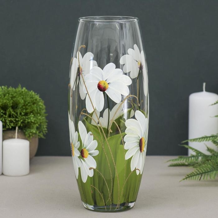 Ваза "Елена" овал d-7,5см; 10х26 см оригинальной формы выглядит элегантно и стильно. Впишется в любой интерьер, подойдет любителям минимализма и стиля модерн. В стеклянной вазе особенно хорошо смотрятся строгие однотонные букеты. Изделие расписано ромашками - символом доброты, скромности, невинности, нежности, искренности чувств, юности и романтичности. Станет идеальным подарком на любое торжество.