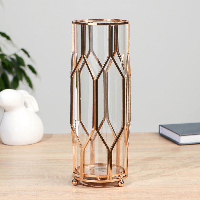 Ваза-флорариум "Ангстрем" геометрия, 10х10х28 см, золото