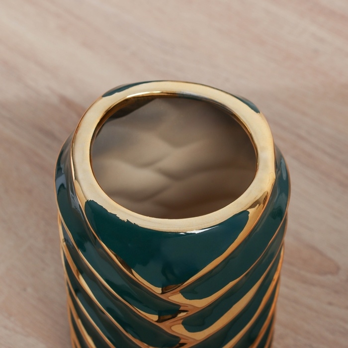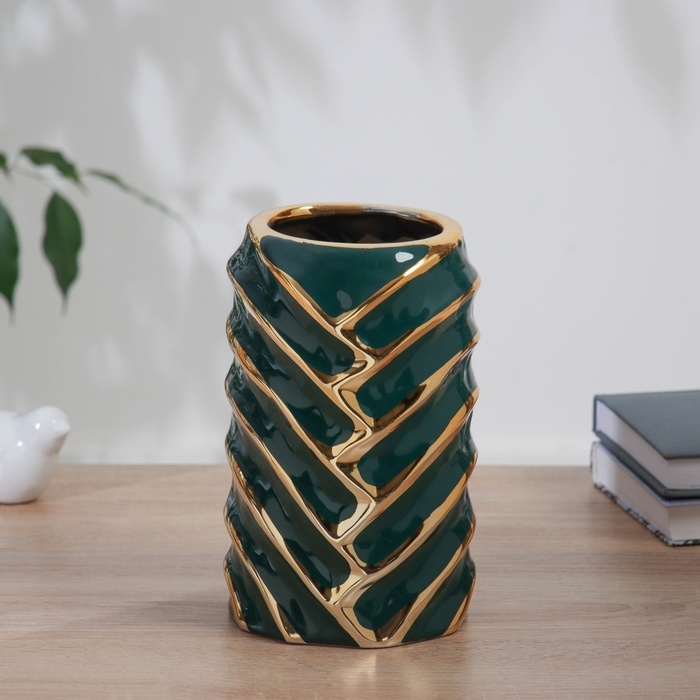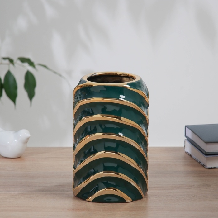 Ваза керамика настольная "Бенце" полосы, d-8.5см, 19,5х12 см, зелёный