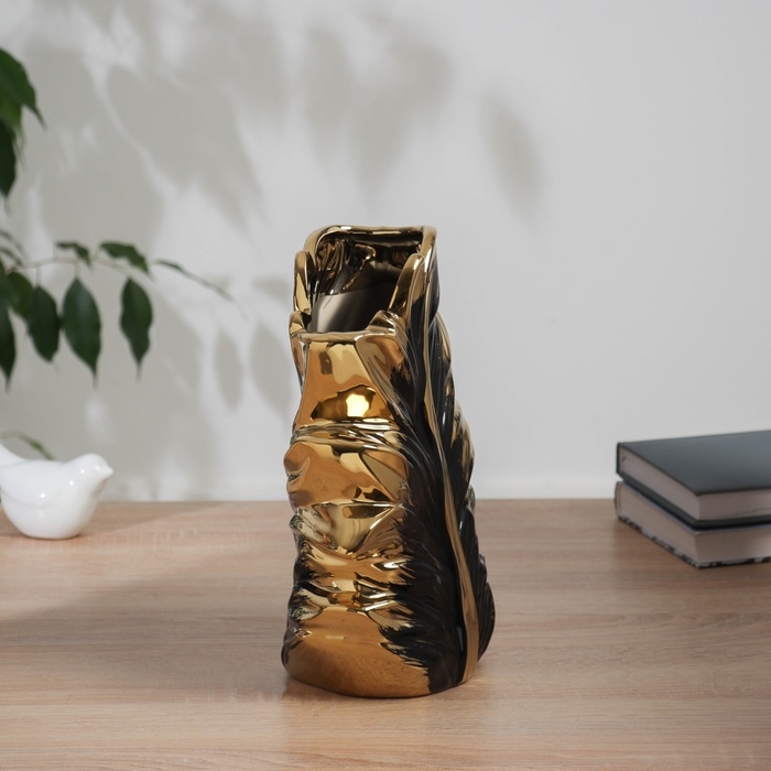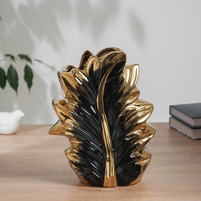 Ваза керамика настольная "Бьорн" 25х18 см, чёрно-золотистый