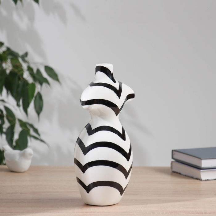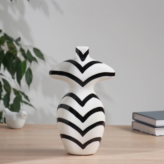 Ваза керамика настольная "Пикассо" (ручная роспись) фигура полосы, 27,5х15 см, чёрно-белый 1045510