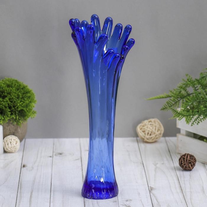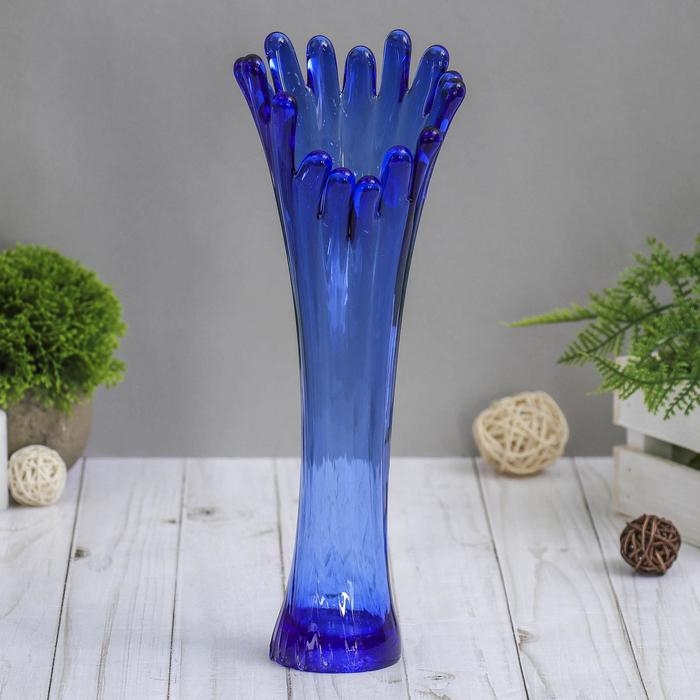 Ваза "Коралл" h 280 мм. из синего стекла (без декора)