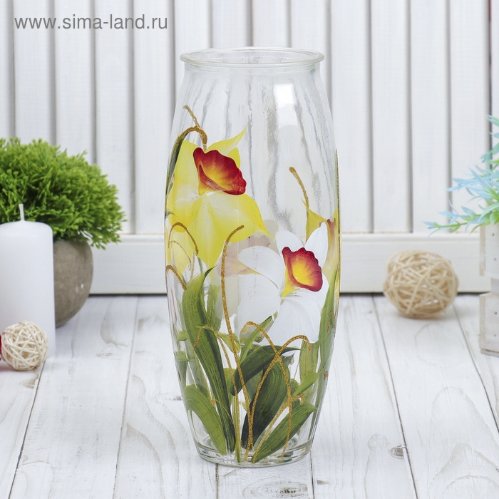 Ваза "Нарцисс" роспись на проз.стекле, d-7см 10х23 см
