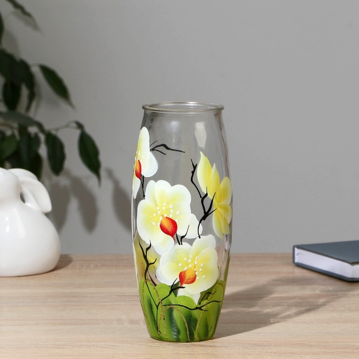 Ваза "Орхидея-2" роспись на прозрачном стекле, d-7; 10х23 см