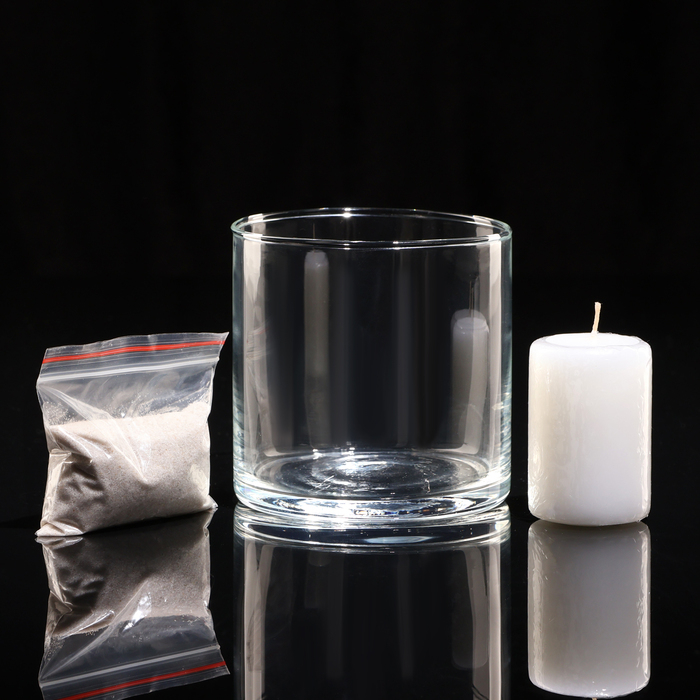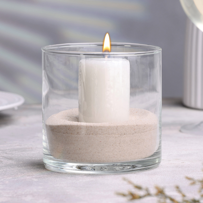 Ваза-подсвечник "Труба" с белой свечой, 10,7×10 см, 9 ч, цилиндр, стекло