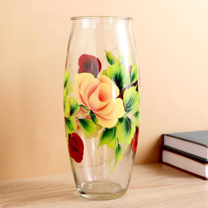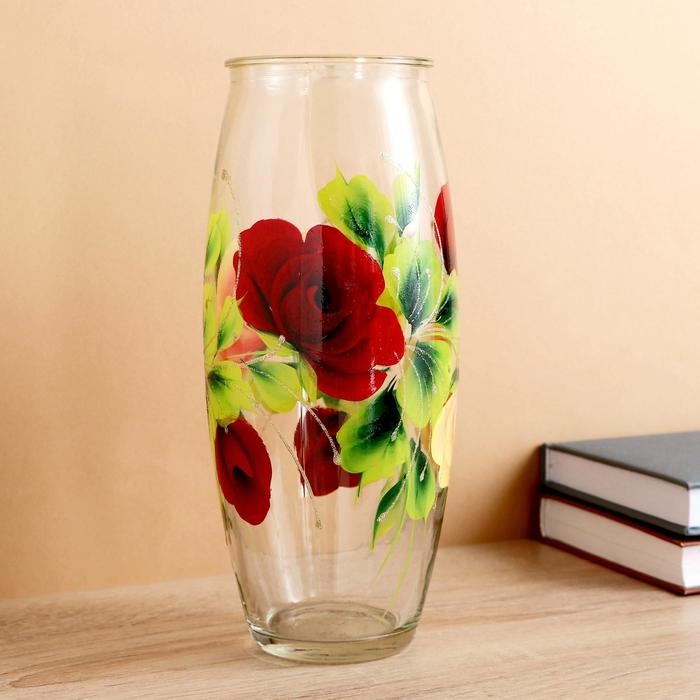 Ваза "Розы" роспись на проз.стекле, d-7см 10х23 см