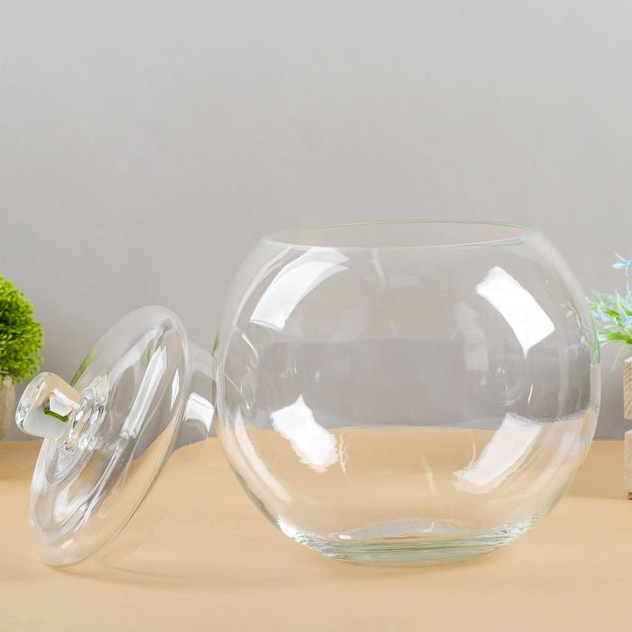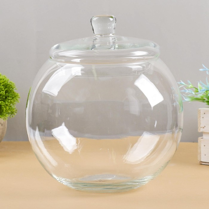 Ваза "Шаровая" 5л с крышкой горл.d-16, 20х23 см (без крышки h-17см) прозрачная
