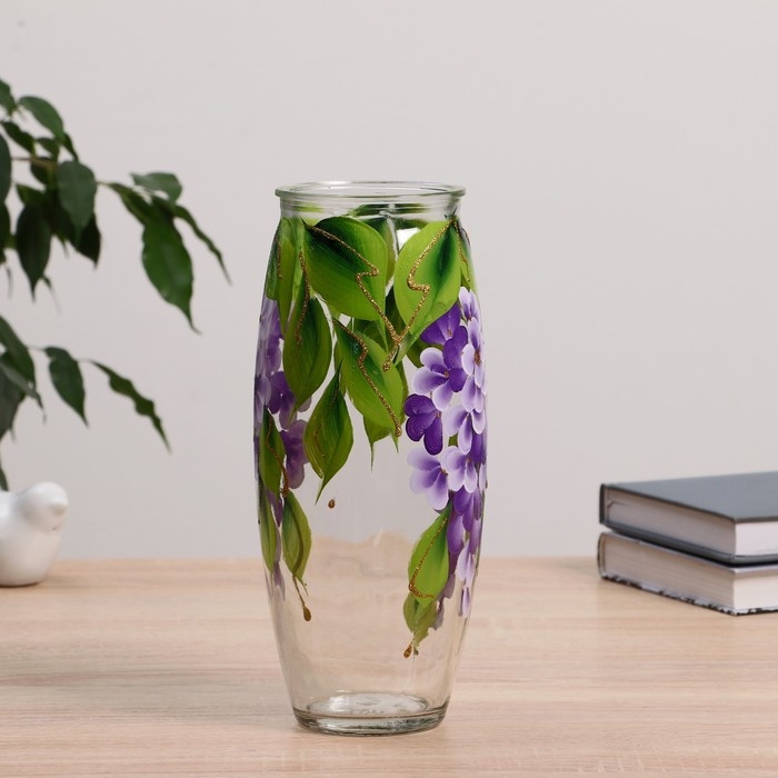 Ваза "Сирень" роспись на проз.стекле, d-7см 10х23 см
