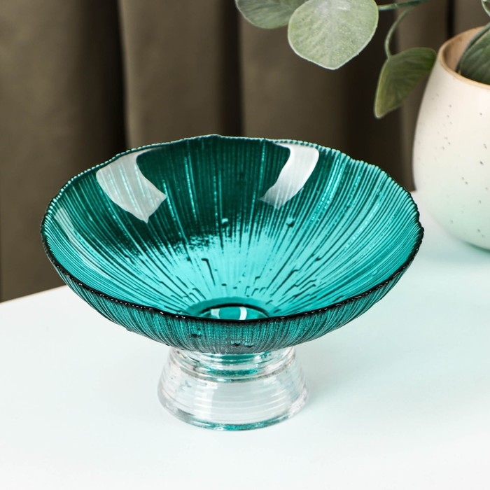 Ваза стеклянная для фруктов «Фейерверк», 350 мл, 15×7,5 см, цвет изумрудный