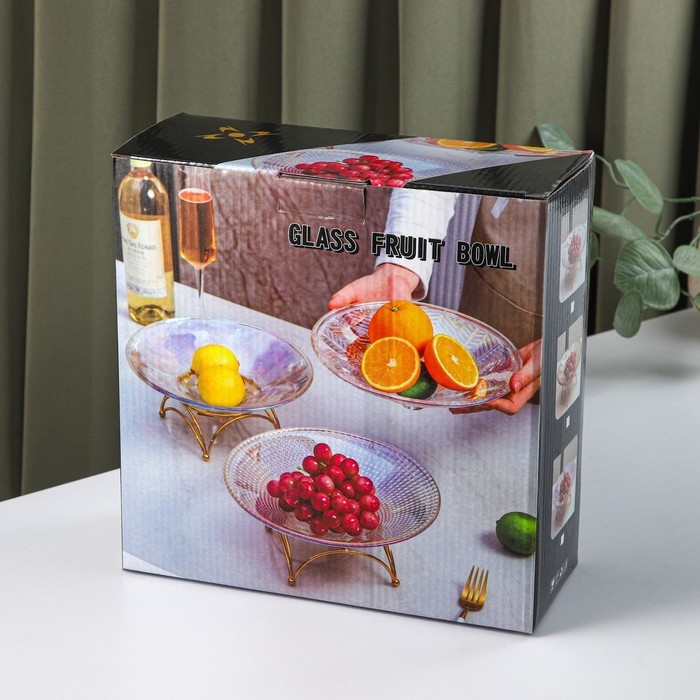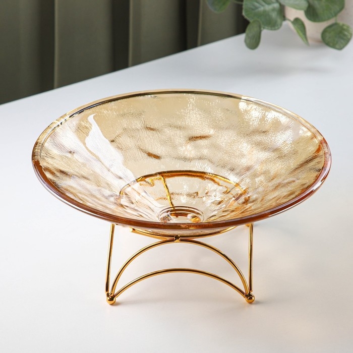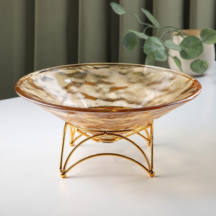 Ваза стеклянная для фруктов «Узор», d=25 см, цвет золотой