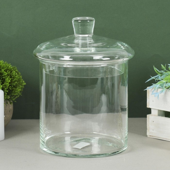 Ваза "Трубка 146" Падерборн с крышкой малая d-14см, h-15см (с крышкой h-20см) V-2,5л прозрачная 113