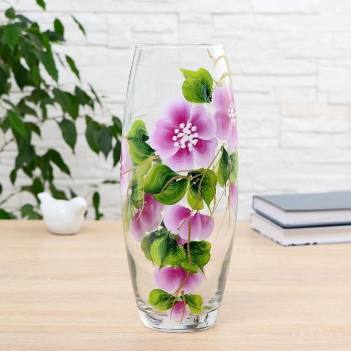 Ваза "Яблонька" овал 26см оригинальной формы выглядит элегантно и стильно. Впишется в любой интерьер, подойдет любителям минимализма и стиля модерн. В стеклянной вазе особенно хорошо смотрятся строгие однотонные букеты. Изделие расписано цветами лаванды, что подчеркнет красоту обладателя как внешнюю, так и внутреннюю. Станет идеальным подарком на любое торжество.