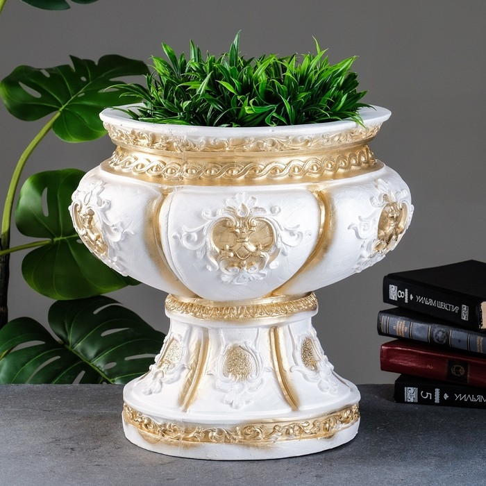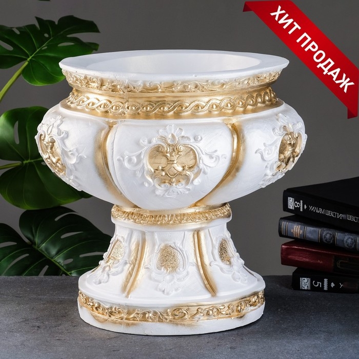 Вазон "Клеопатра", белое золото, 4,5л/ 37х42х42см