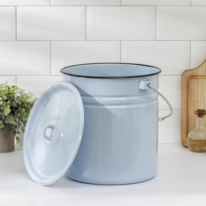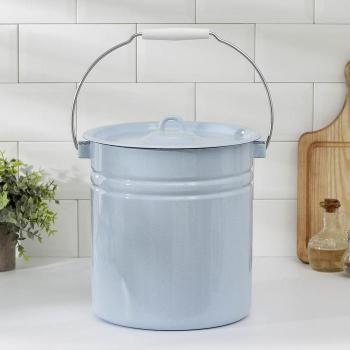 Ведро эмалированное, 12 л, с крышкой, цвет голубой