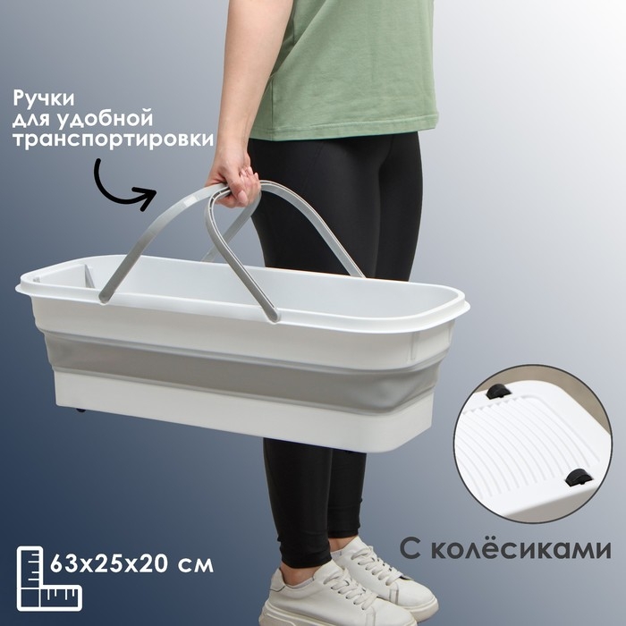Ведро для уборки складное, 63×25×20 см (дно 53×17 см), цвет серый