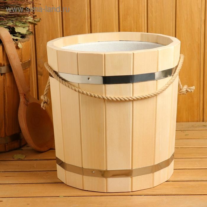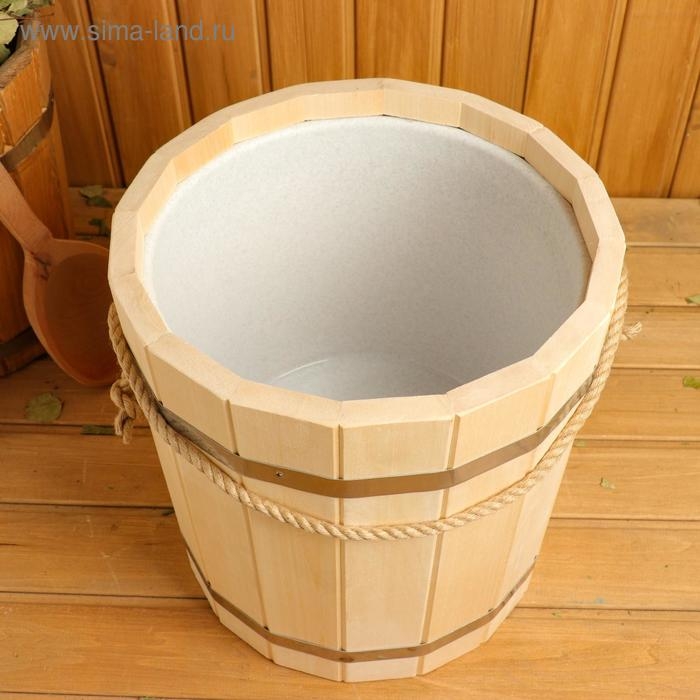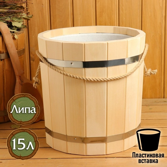 Ведро-запарник из липы, 10 л, пластиковая вставка, ручка-веревка