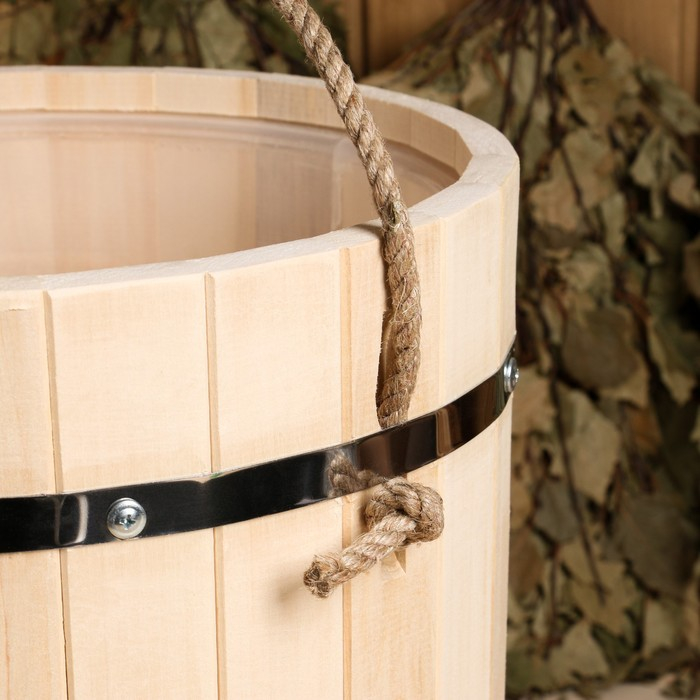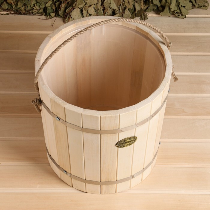 Ведро-запарник из липы, 18 л, пластиковая вставка, ручка-веревка, "Добропаровъ"