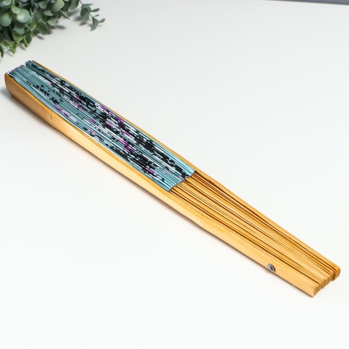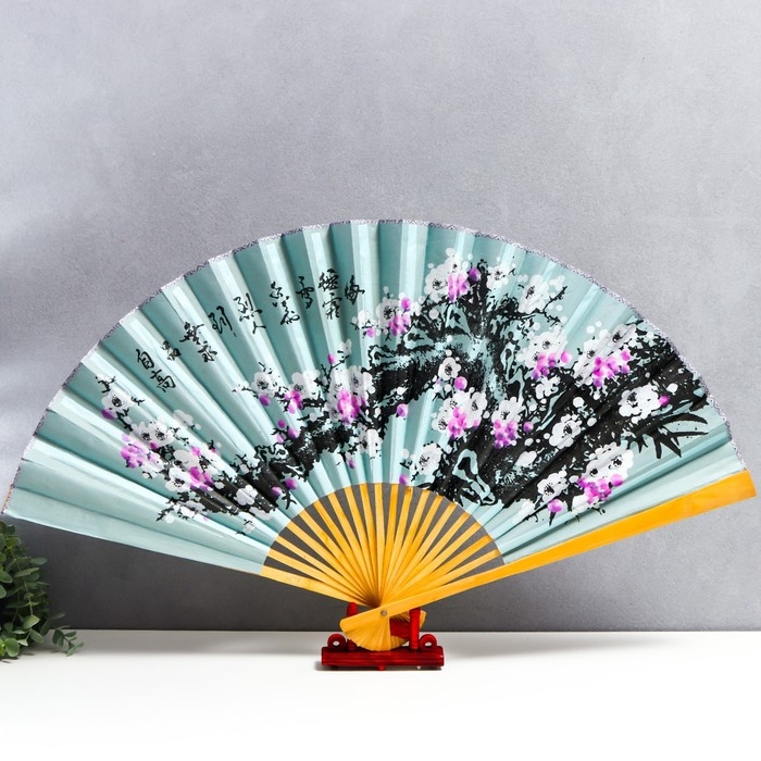 Веер бамбук, текстиль h=50 см "Сакура" голубой