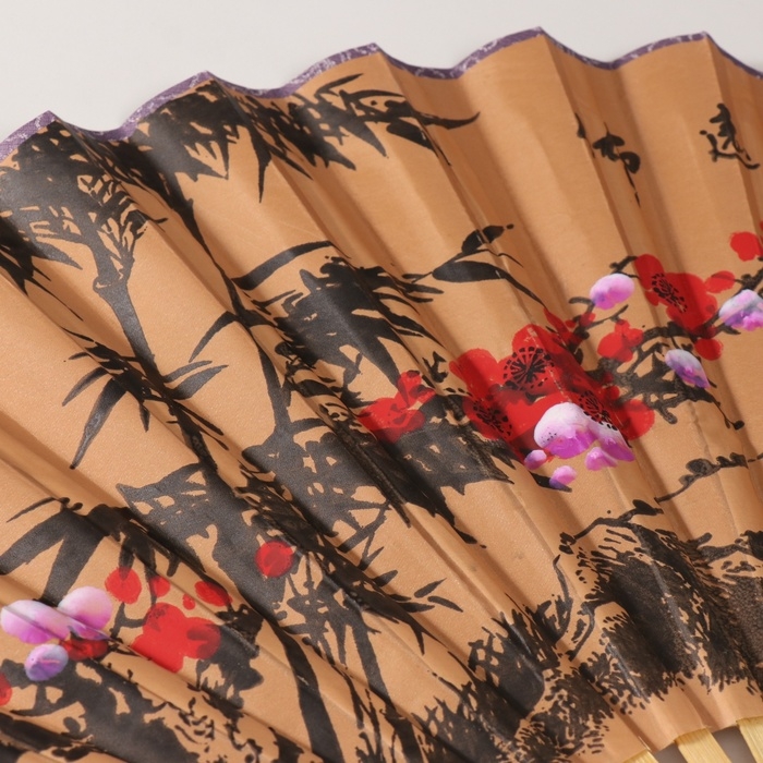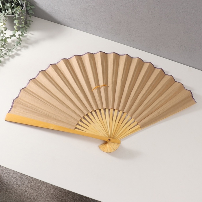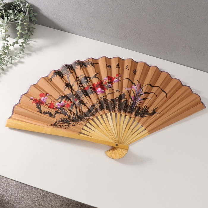 Веер бамбук, текстиль h=50 см "Веточка сакуры" бежевый