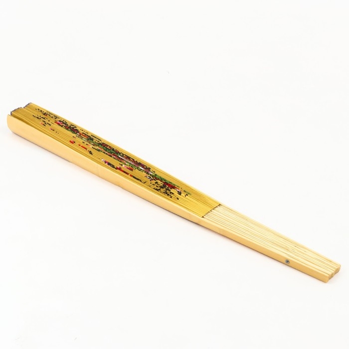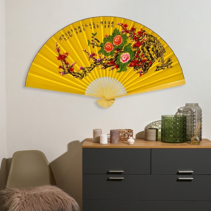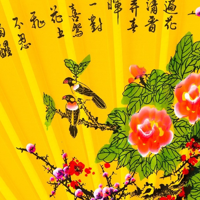 Веер бамбук, текстиль h=90 см "Сакура и пионы" жёлтый