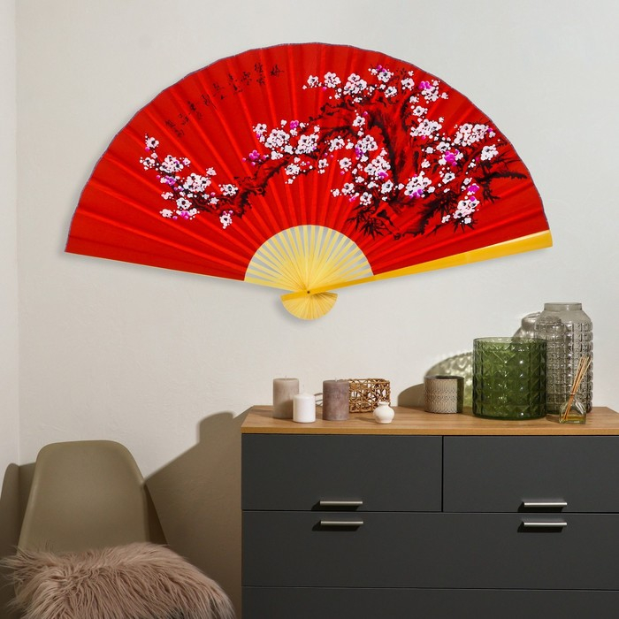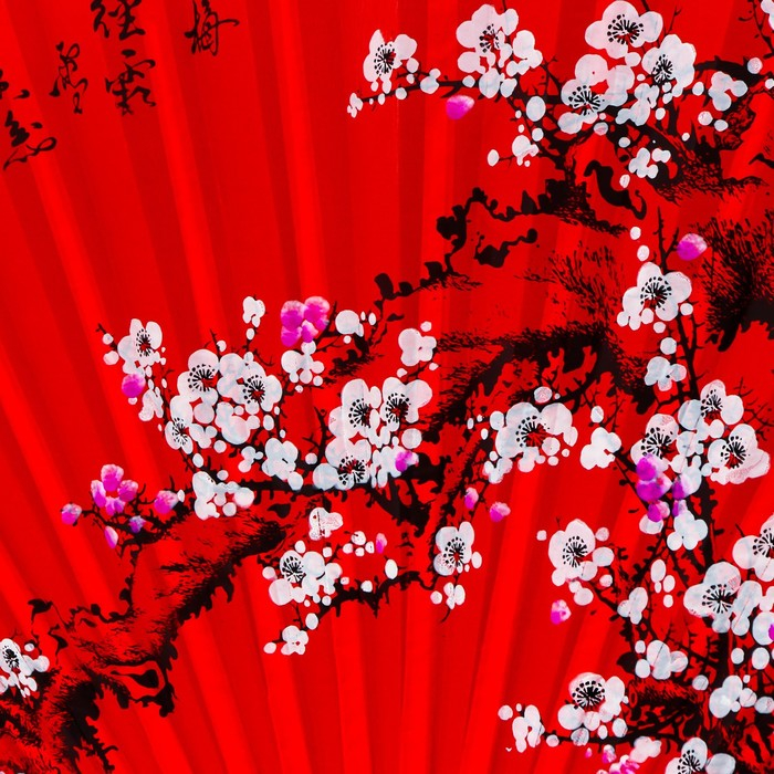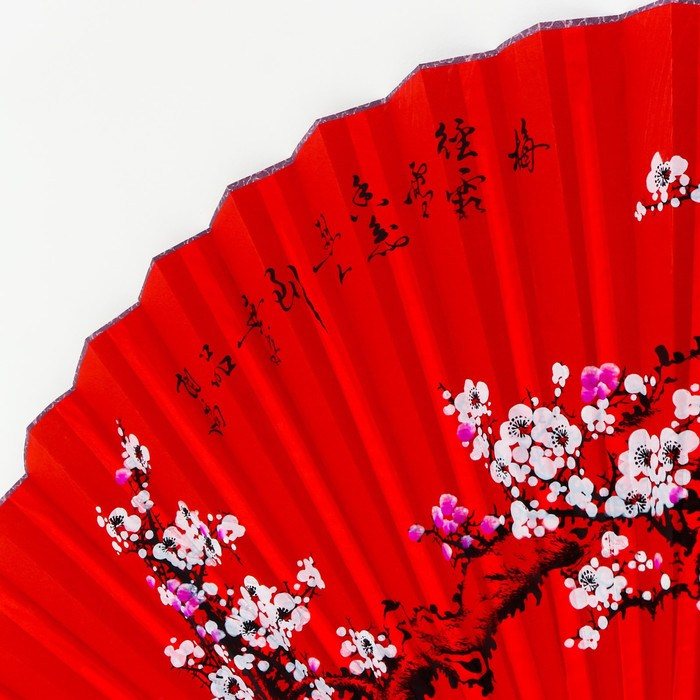 Веер бамбук, текстиль h=90 см "Сакура" красный